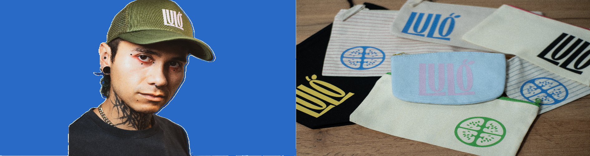 Modèle casquette nc avec design 'Lulo vert petit format'.